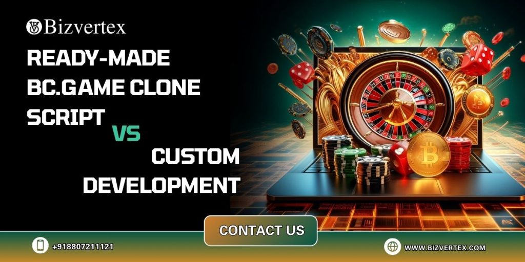 Are you a Startup or Entrepreneur looking to launch your gaming platform like BC.Game? Are your ideas of choosing the best one still on the go? We have covered everything for you in this blog. The choice between a pre-made BC.Game clone script and bespoke creation for the launch of a cryptocurrency-based gaming platform is contingent upon a number of criteria, including long-term objectives, customization requirements, timeframe, and budget.In this article, let’s discuss the difference between ready-made BC.Game clone script and custom development along with the guidelines to how to pick up the right one for your business.